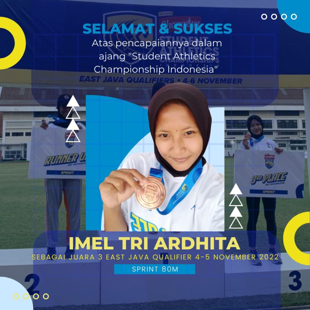 Imel Tri Ardhita, siswi kelas 9A yang baru-baru ini menorehkan prestasi dalam lomba lari 80 meter tingkat provinsi. Imel, menjadi salah satu contoh siswi berprestasi di bidang olahraga. “Saat Imel pamit ke ruangan saya untuk mengikuti perlombaan ini, saya janjikan hadiah untuknya bila nanti sepulang lomba dia membawa medali emas, perunggu atau pun perak. Hadiahnya adalah uang tunai 1 juta langsung akan diberikan nanti saat upacara Hari Pahlawan. Dan kepada siapapun yang bisa berprestasi di tingkat provinsi, sekolah akan siapkan hadiah yang sama untuk kalian”, kata pak Narto dengan penuh semangat.
